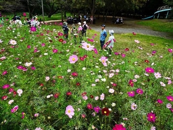 参加者が撮影されたコスモス