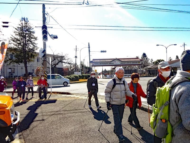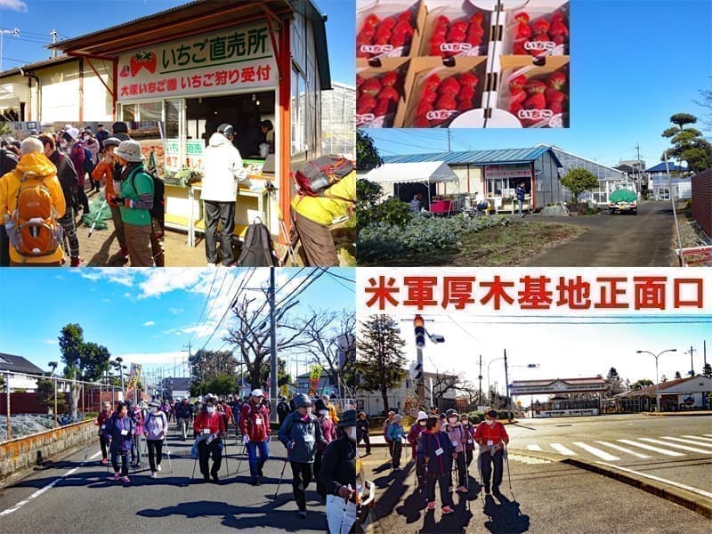 ・コース:相模大塚駅~桜森稲荷神社~相鉄厚木基地引き込み線跡~厚木基地ゴルフ場外周~北の台地区センター ~大塚いちご園 ~厚木基地正面口前~大上ふれあいの家 ~東柏ヶ谷近隣公園 ~さがみ野駅 ・距離:約6km